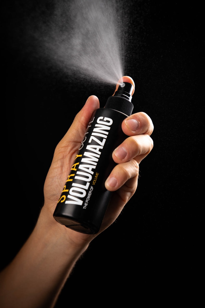 Pulveriza 3 veces el Spray Voluamazing en la palma de la mano.